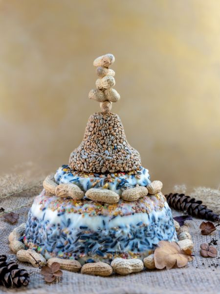 Ook vogels zijn dol op pindakaas, maar dan niet op de gewone, maar op de speciale, zoutloze vogelpindakaas, die nu in veel supermarkten verkrijgbaar is. Misschien heb je in ons tuincentrum in Oostburg en Renesse al zo’n speciaal hangkastje voor vogel-pindakaas gekocht, waar de pot precies in past. Anders kun je gedroogde dennenappels of lege rollen wc-papier volsmeren met vogelpindakaas en deze eventueel nog door een schaaltje vol vogelzaden rollen. Rijg een stevig touw of draad rond de dennenappels of wc-rolletjes en knoop ze met een lus aan een boomtak of aan de pergola.